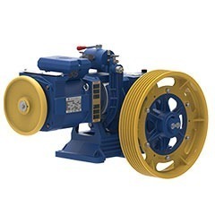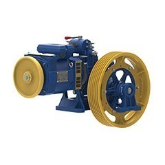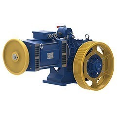 موتور گیربکسی: این موتور قدرت پایین و در عین حال سرعت چرخش بالایی دارد. در این موتورها نیروی محرکه از سمت موتور به قرقره انتقال مییابد. زمانی که برق به موتور وارد شود، در سیم پیچ میچرخد. در ابتدا این چرخش، میله گیربکس و سپس دندههای گیربکس به چرخش میافتد. در آخر نیز فلکه گیر بکس تکان خورده و سیم بکسل بالابر را به سمت بالابر میکشد. از این رو آسانسور در بین طبقات جابجا میشود.