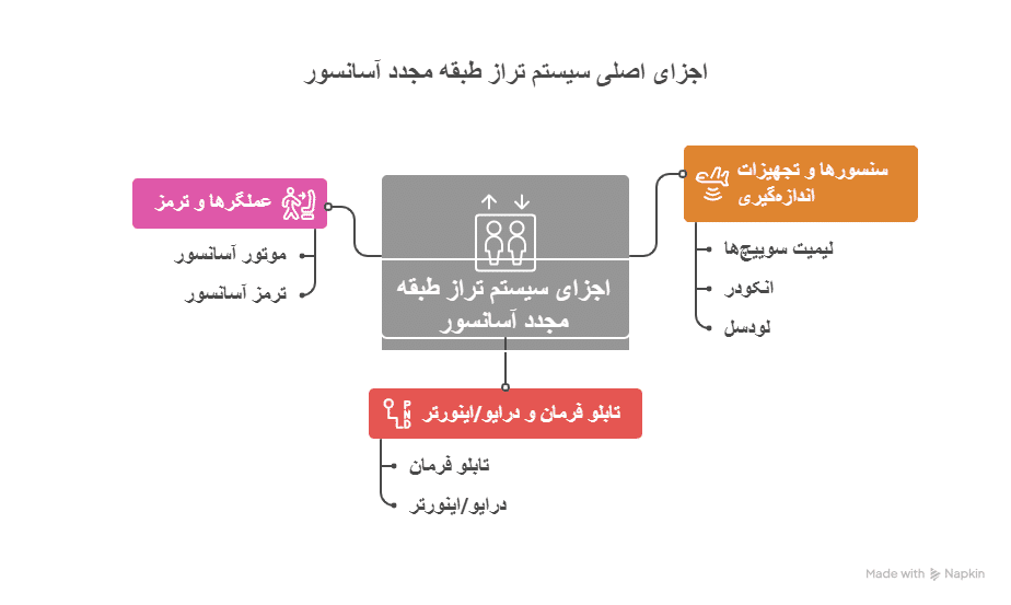 اجزای اصلی سیستم تراز طبقه مجدد آسانسور